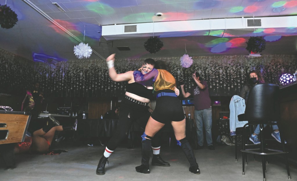 Filmed in September andreleased on the Internet in October, “Paris Is Bumping” featured a handful of wrestlers who had convened for matches at a tiny bar in Valley Lee, in Southern Maryland. It’s a low-ceilinged dive with harsh halogen lights and wood-paneled walls. Staged with no audience because of the pandemic — except for a bartender and a few barflys — it seemed as if fights broke out spontaneously between wrestlers.